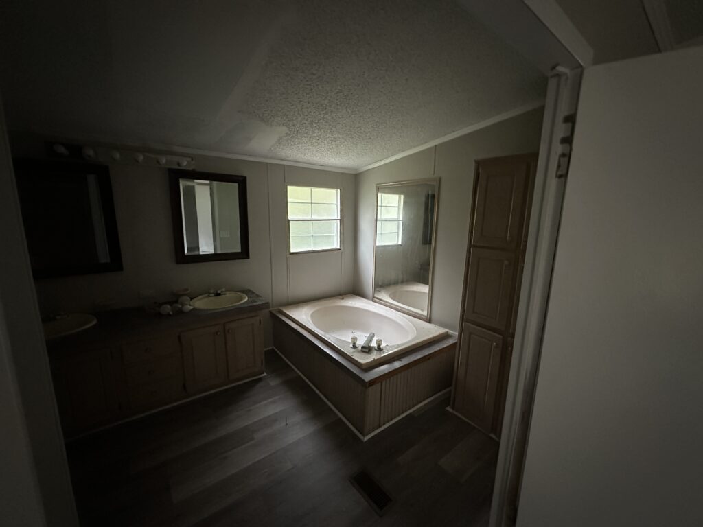 The master suite is a true retreat, featuring a Jack-and-Jill walk-in closet, double vanity, and a luxurious garden soaker tub.